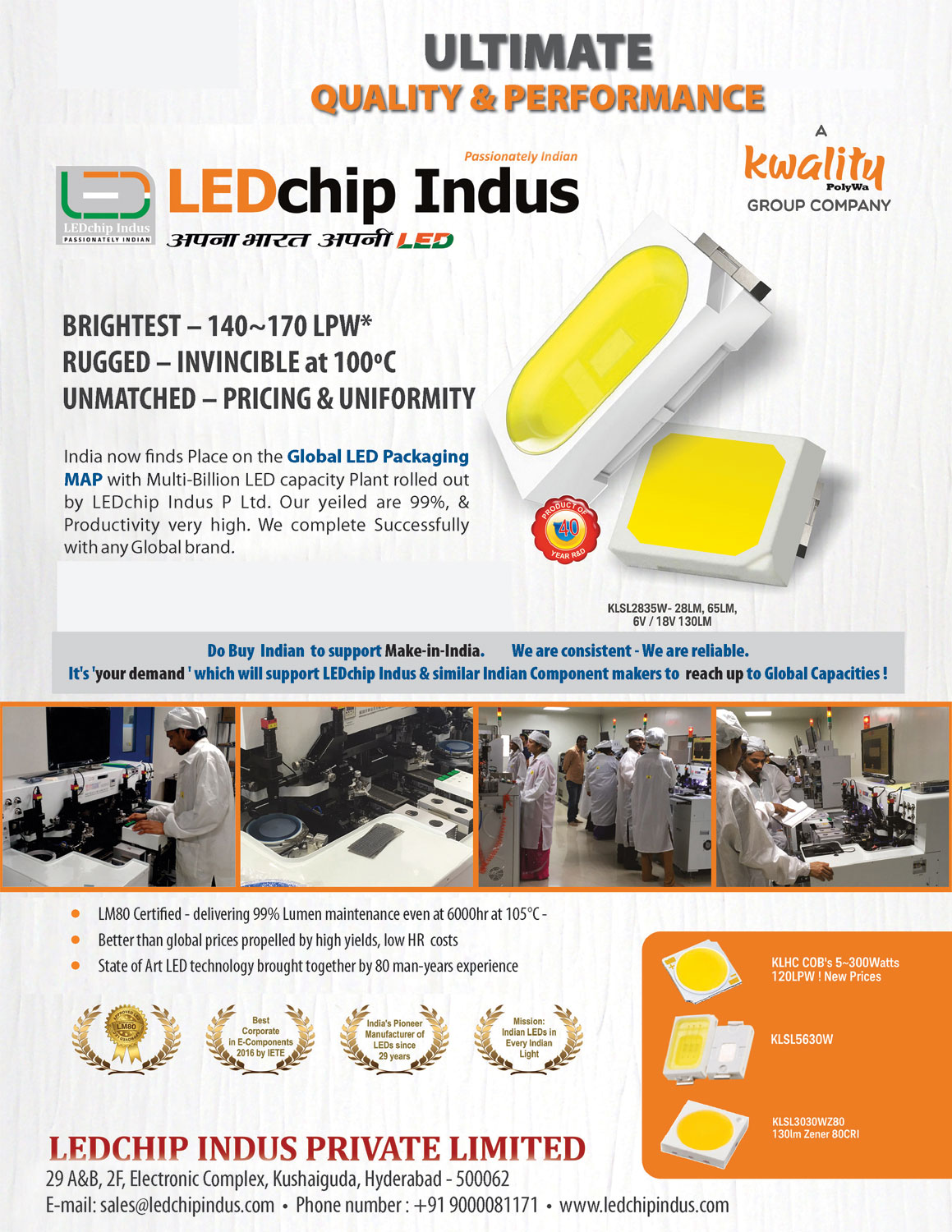 | LEDchip Indus P Ltd is Manufacturer of High-Reliability SMD LEDs - in fully Automated LEDs plant, product is un-touched by hand, under Class 10K Dust-free Airconditioned environment. Kwality Photonics / LEDchip Indus ? Kwality Electronics are India's Pioneer & Sole producers of LEDs sonce 1987. The group has 5 decades of glorious history as producers of Lighting for Railway Signalling, Merchant navy, Automotive OEMS and Industrial indicatr Bulbs, |