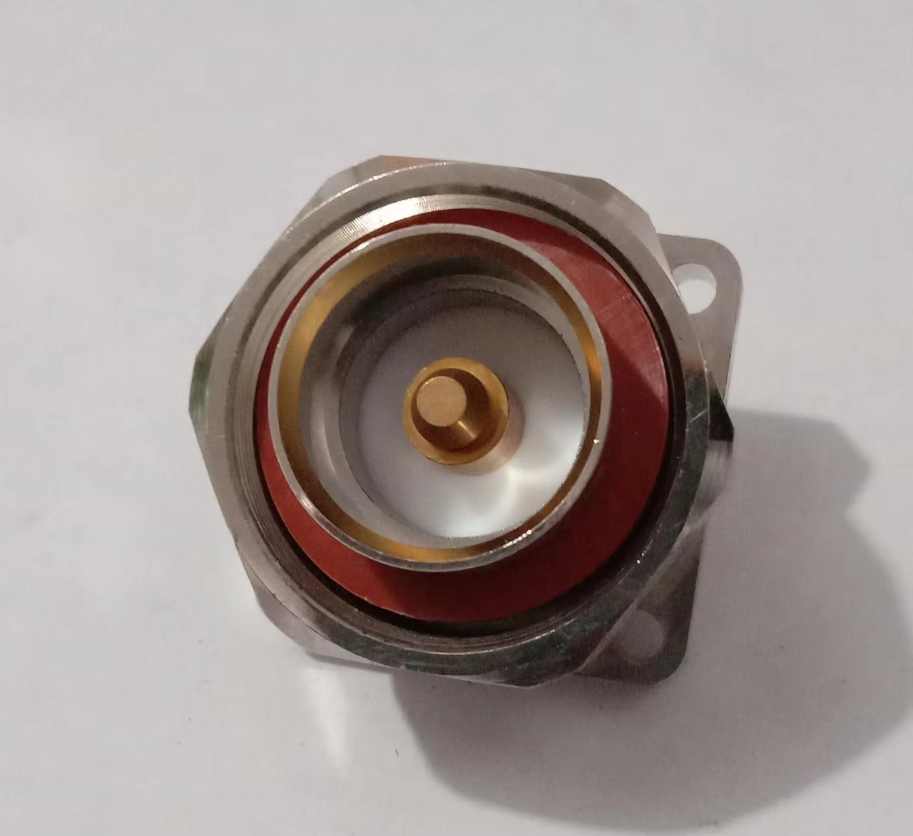 1. Connector Type: DIN Male connector with a flange for secure panel mounting. 2. Mounting Style: 4-hole panel mount with a solder connection for reliable installation. 3. Frequency Range: Supports up to 7.5 GHz, making it ideal for high-frequency RF and microwave applications. 4. Impedance: Standard impedance of 50 ohms for efficient signal transmission with minimal loss.