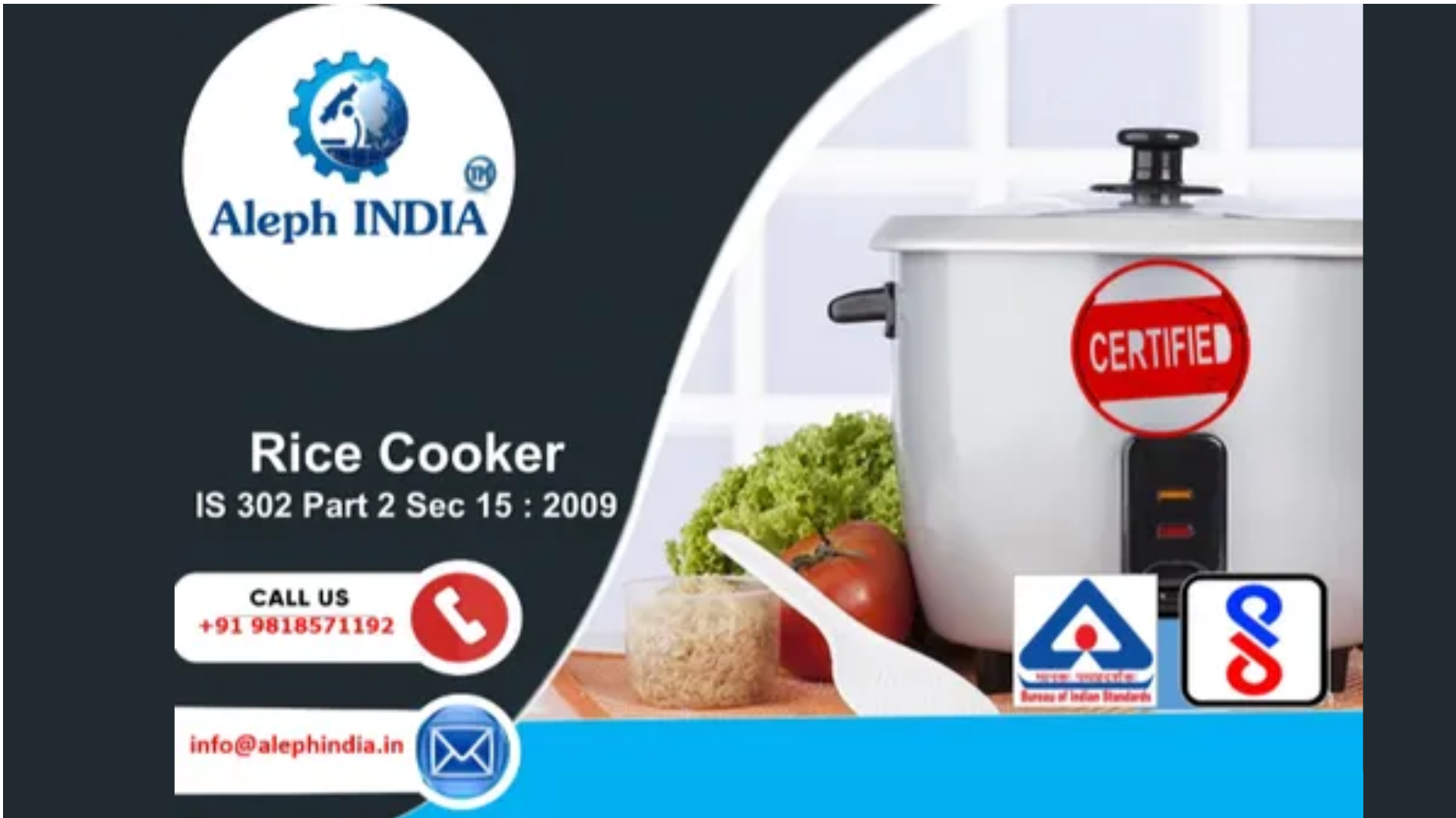 BIS Registration For Rice Cooker, AlephINDIA is a single window for all kinds of technical certification and Testing Equipment. Certification | Testing | Compliance | Training | Audit